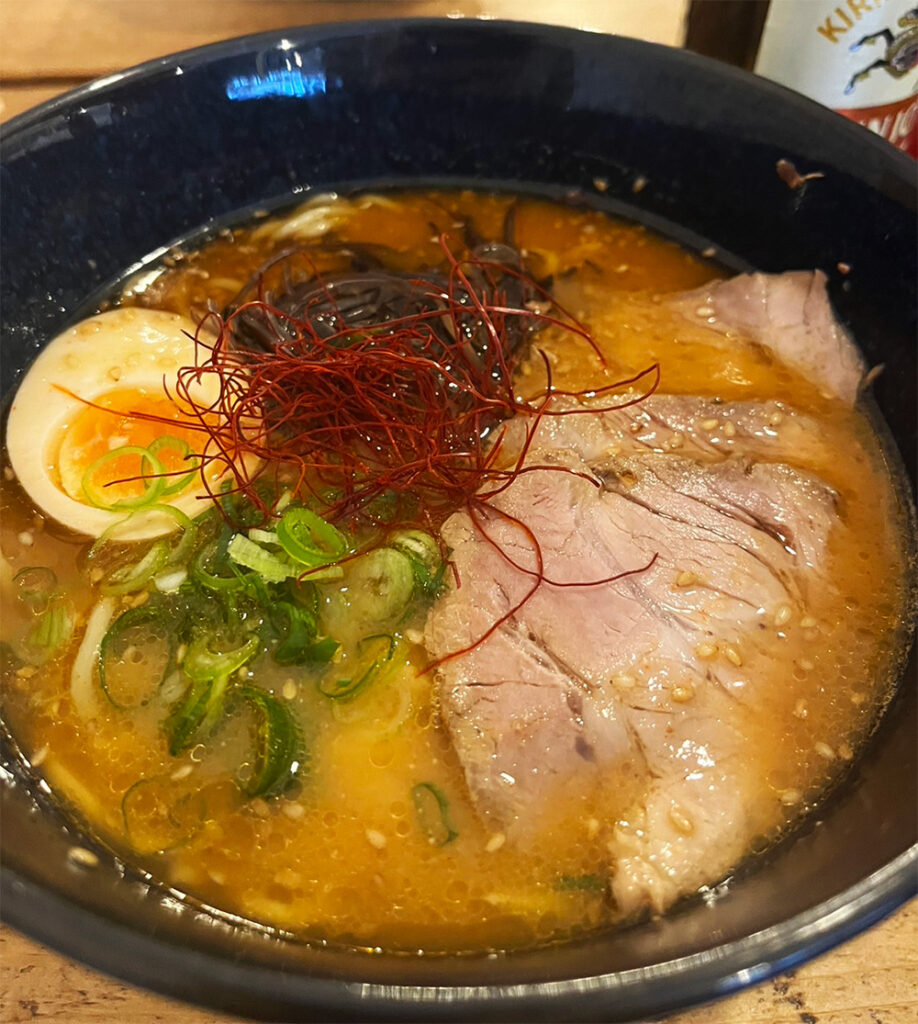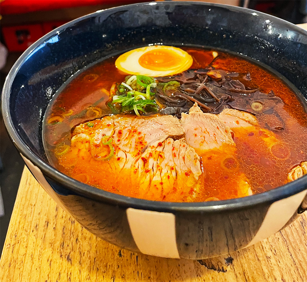 醤油と味噌のスープにはそれぞれスパーシー味の辛いスープオプションが用意されており、辛味が加わることで、温かみのある濃厚な味わいが特徴です。それほど強い辛さではなく、辛味はスープに溶け込み、ラーメン全体にピリッとしたアクセントを加える役割を果たしています。